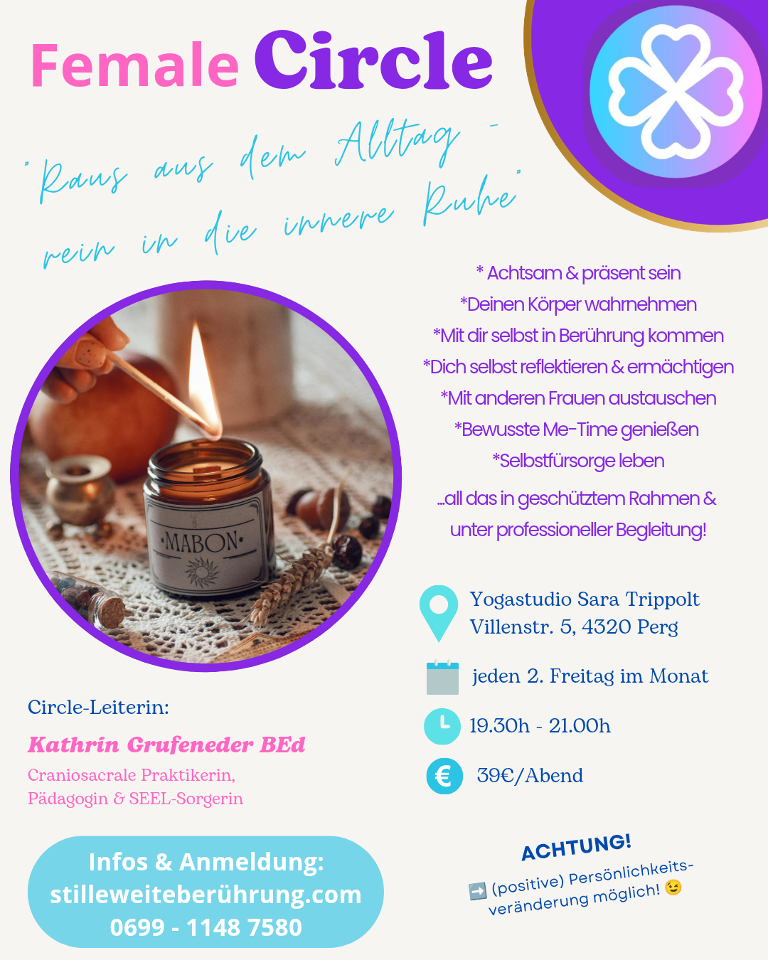 Für Anfragen zu meiner Tätigkeit als Trainerin & Referentin in der Erwachsenenbildung melde dich gerne telefonisch oder per Mail bei mir!